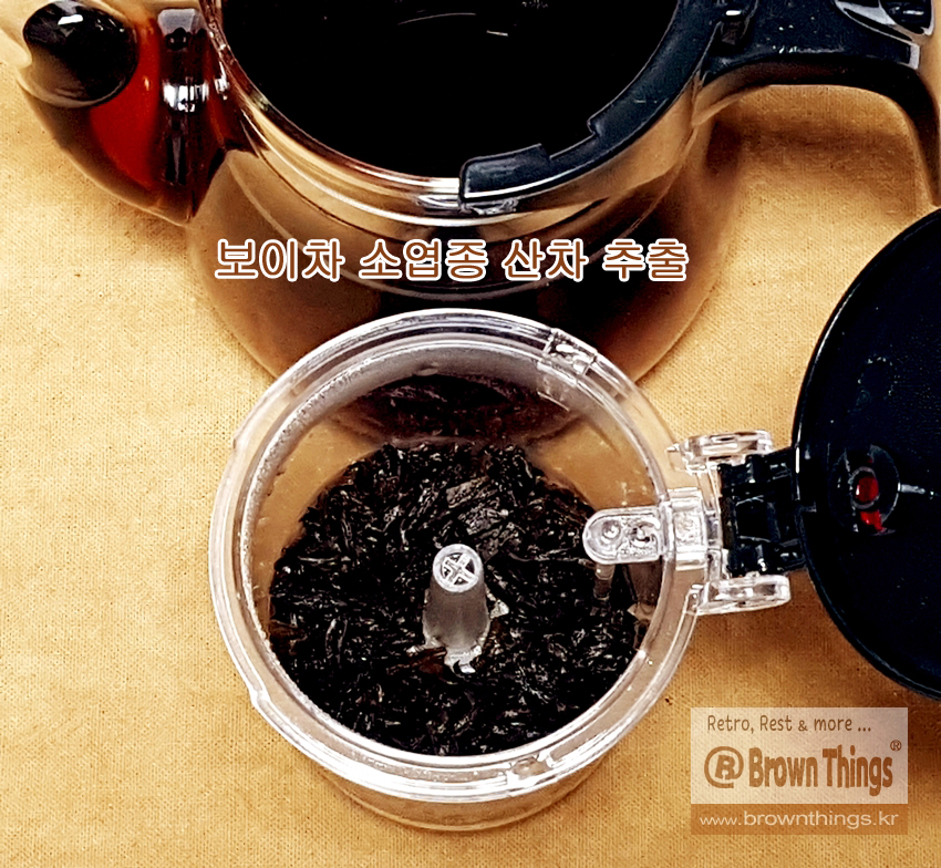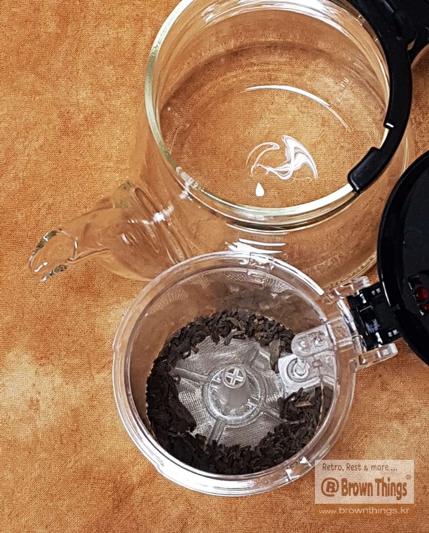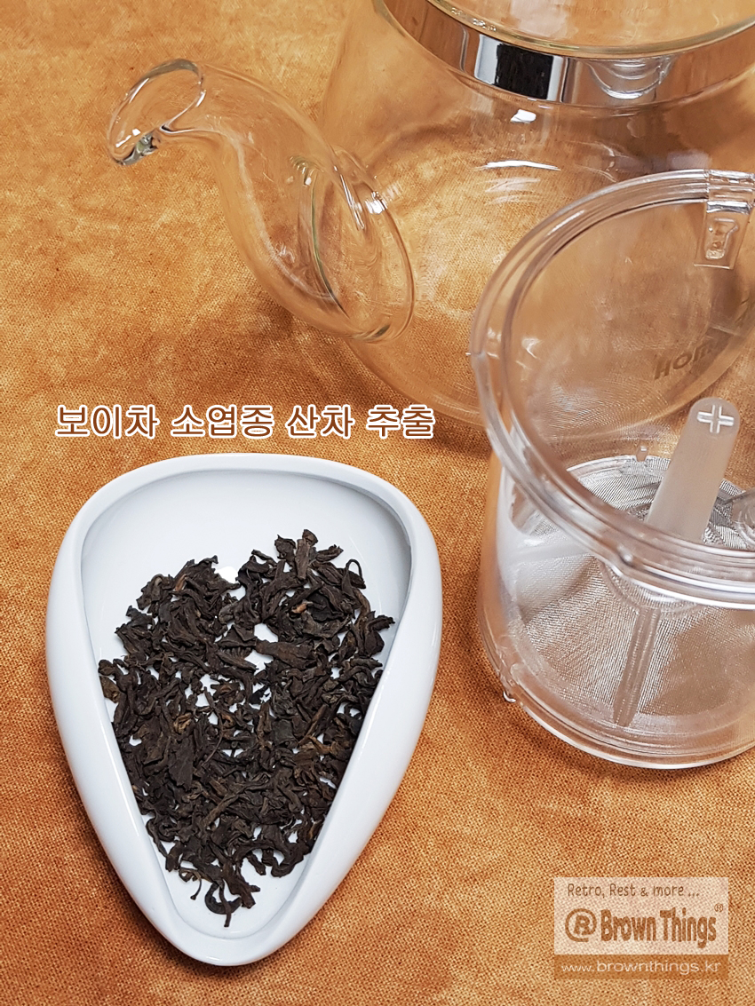 홈아트 주전자형 600ml 용량 티포트에 보이차 소엽종 산차 우려 마시기.