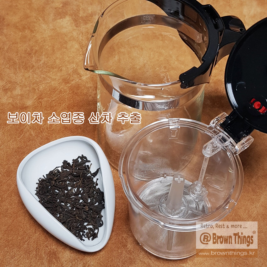 홈아트 표일배 공도배형 티포트 500ml로 보이차 산차 추출하기.