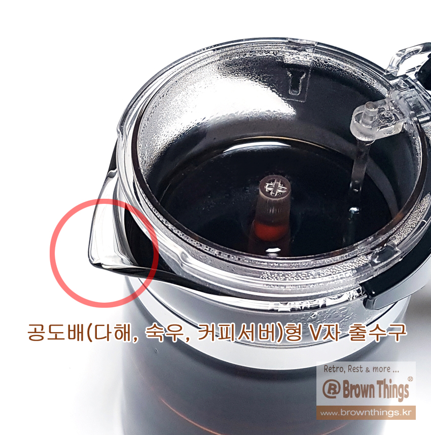 주전자형 U 출수구가 아닌 공도배(커피서버, 다해, 숙우)형 V자 출수구.