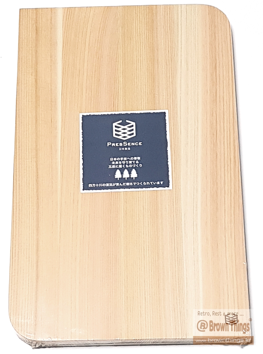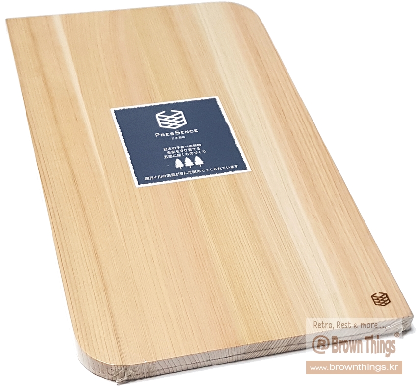 일본의 디자인 주방 브랜드 프레센스(PRESSENCE, プレッセンス)의 편백나무(히노끼) 원목 도마 중형.