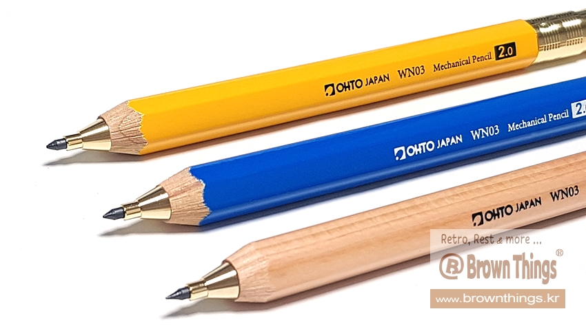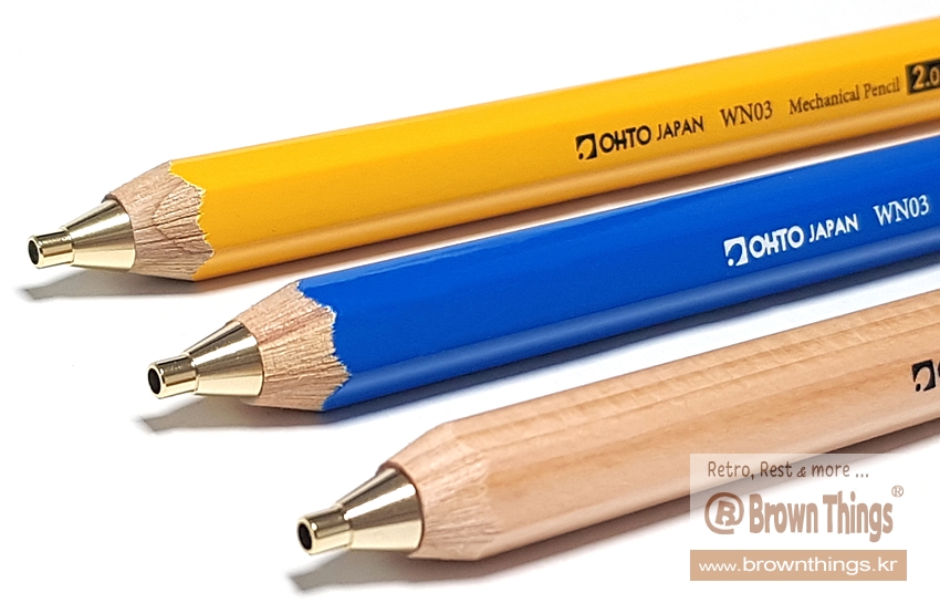 >> 오토(OHTO) 몽당연필형 나무 샤프 2.0 나무 / 파랑 / 노랑 | brownthings.kr/surl/P/222