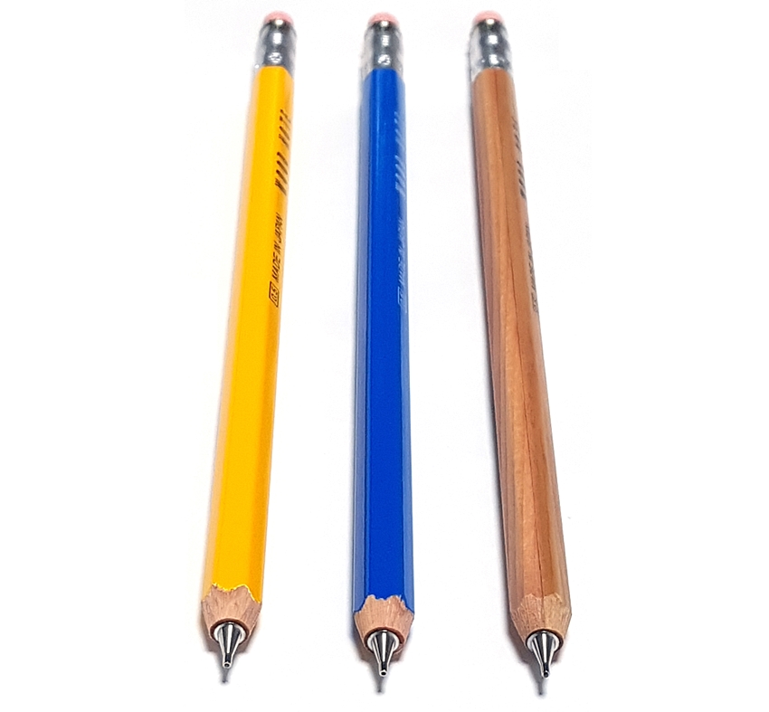 연필과 똑같은 모양에 연필심 흑연 대신 샤프심 장치를 결합한 나무 샤프.