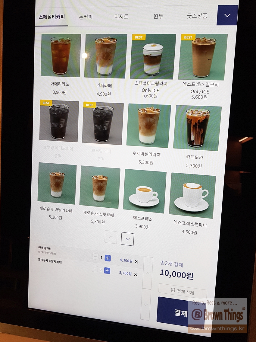 디카페인 아메리카노, 유기농제주말차라떼 주문.