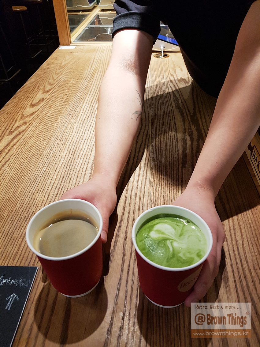 "주문하신 디카페인 아메리카노, 유기농제주말차라떼 나왔습니다!"