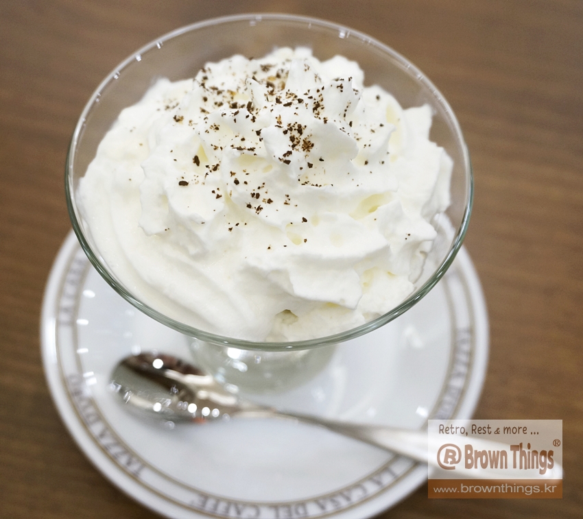 생크림을 파냈더니 보이는 살얼린 에스프레소.