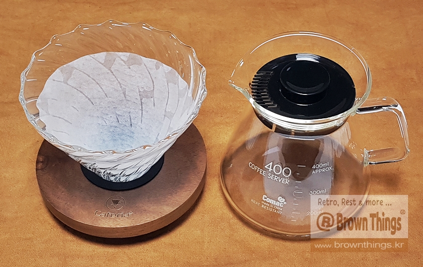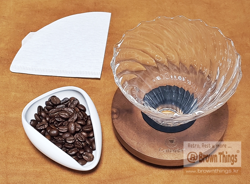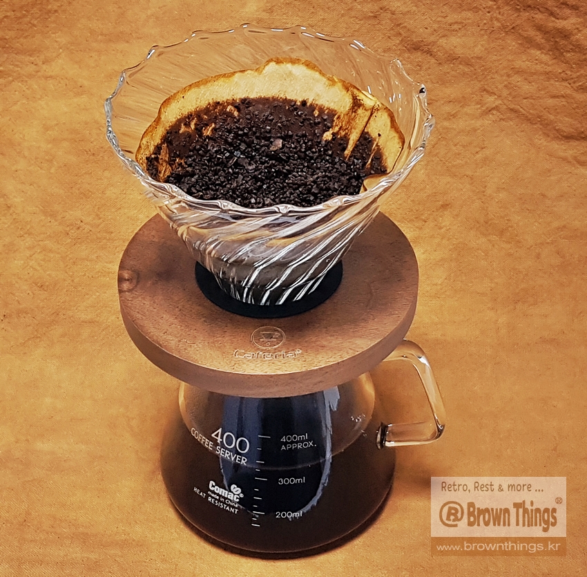 카페리아 나선형 물길 드리퍼 - 유리 3~5인용 / 호두나무 받침 | brownthings.kr/surl/P/290