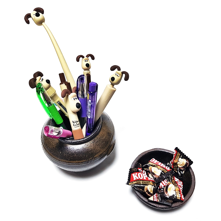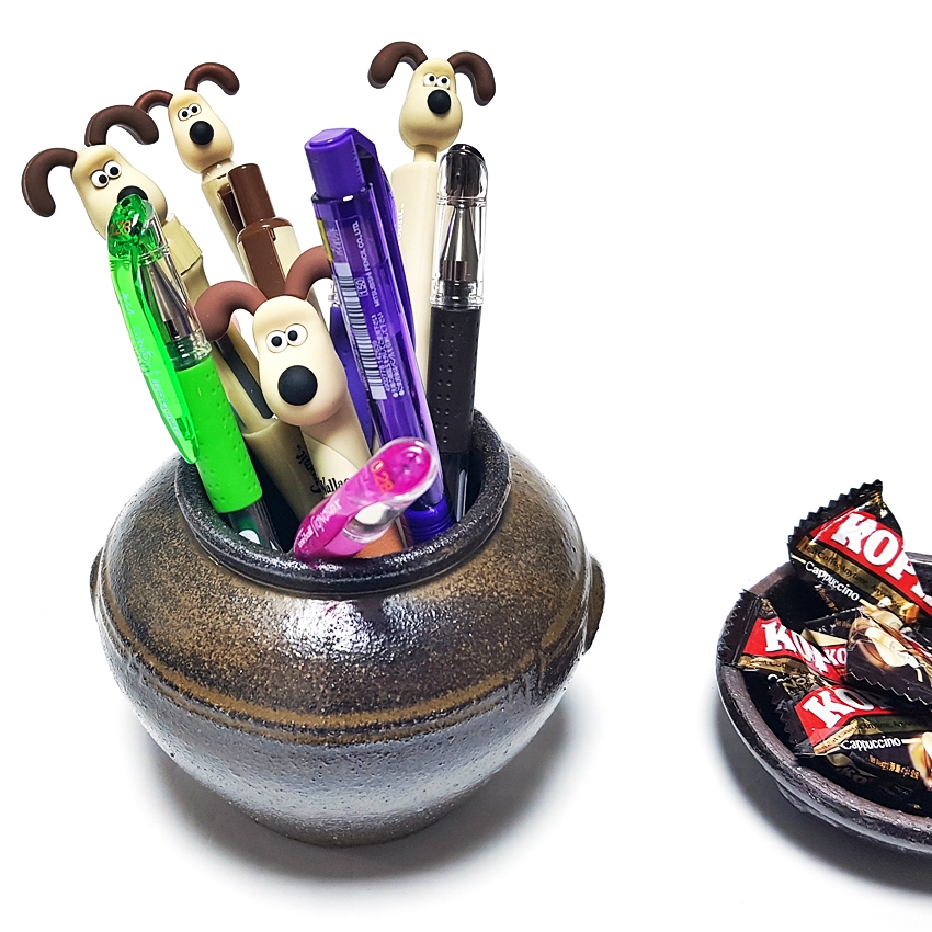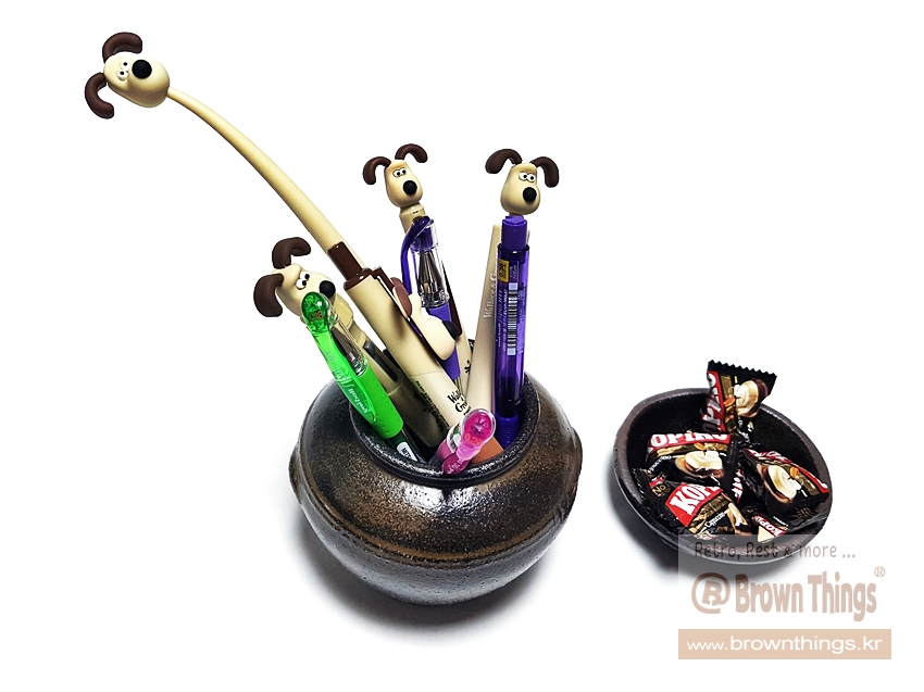 월레스와 그로밋의 강아지 피규어 그로밋 볼펜 샤프, 유니볼 시그노 중성 볼펜 꽂이 _ 오지 항아리 소품 오지독 L