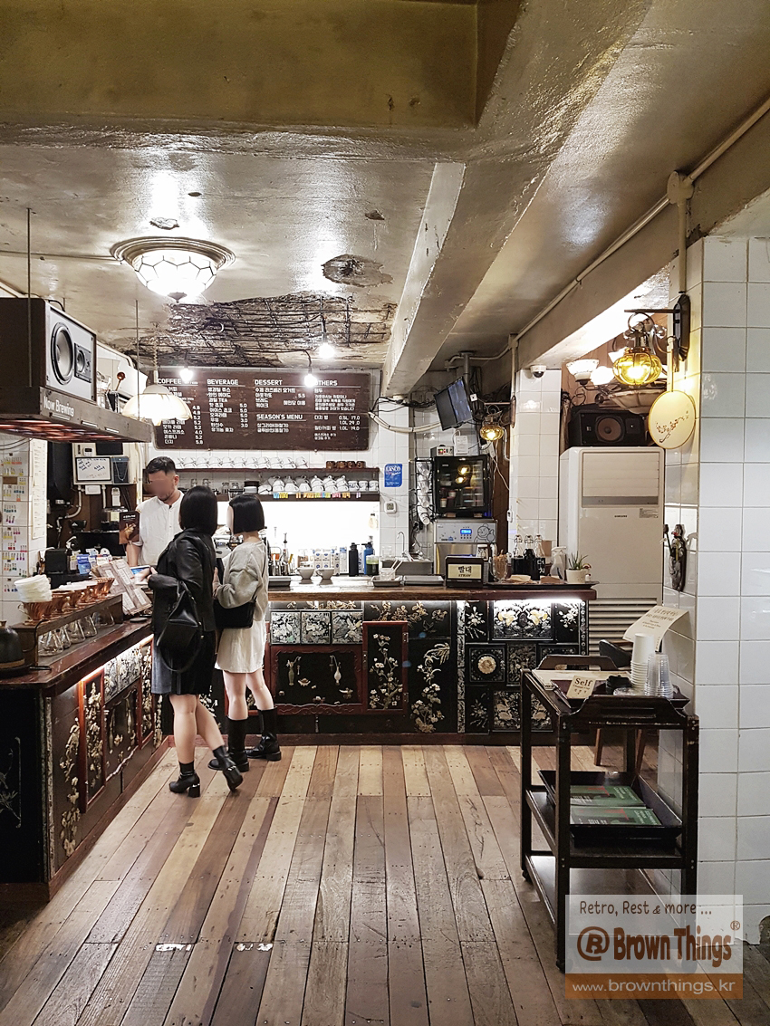 1958년 11월 20일 준공해서 68년의 세월을 머금고 있는 근대 건물 1층에 레트로 세상이 펼쳐진 커피집.