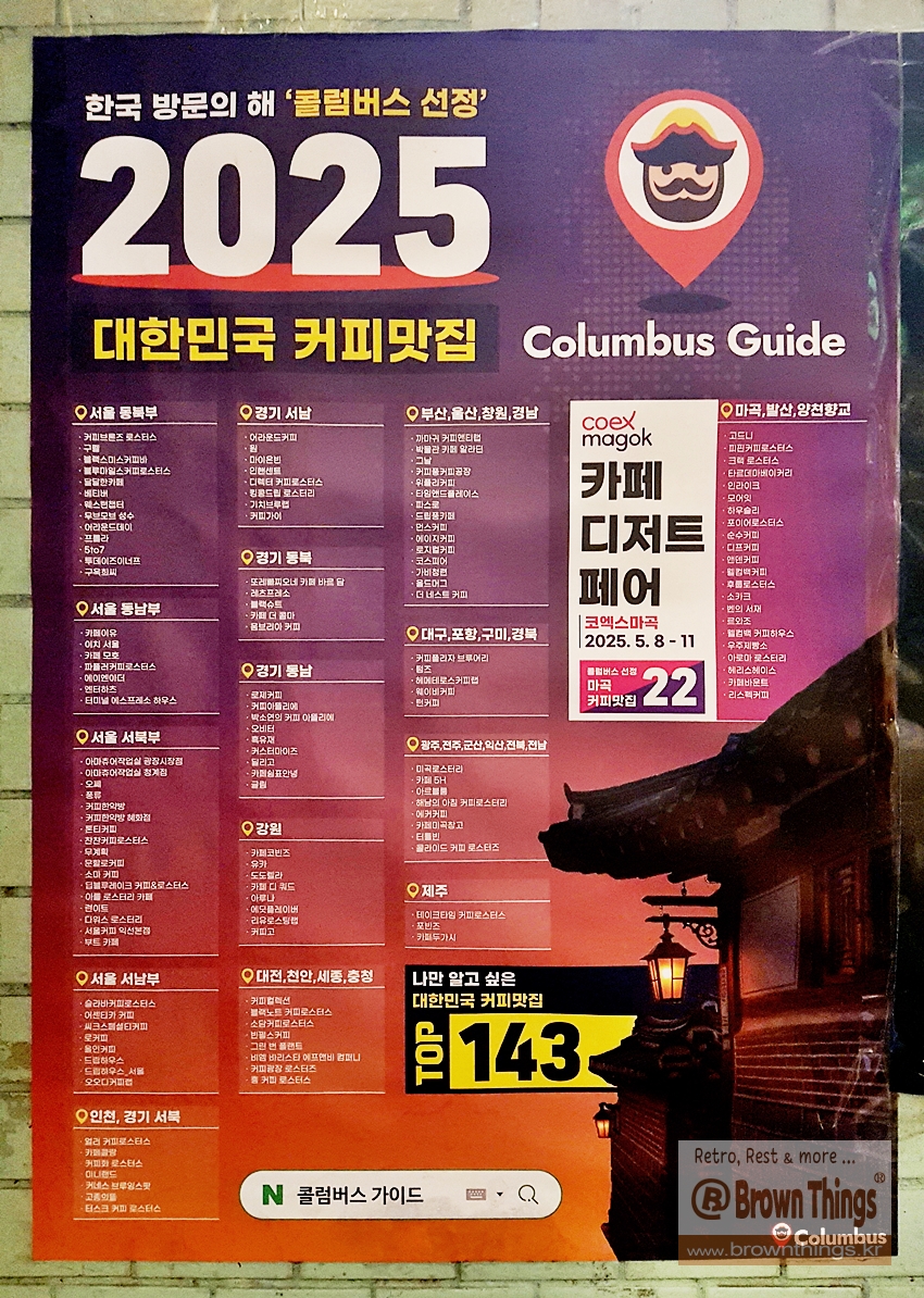 - '콜럼버스 선정' 2025 나만 알고 싶은 대한민국 커피맛집 143곳 | book.brownthings.kr/1247
