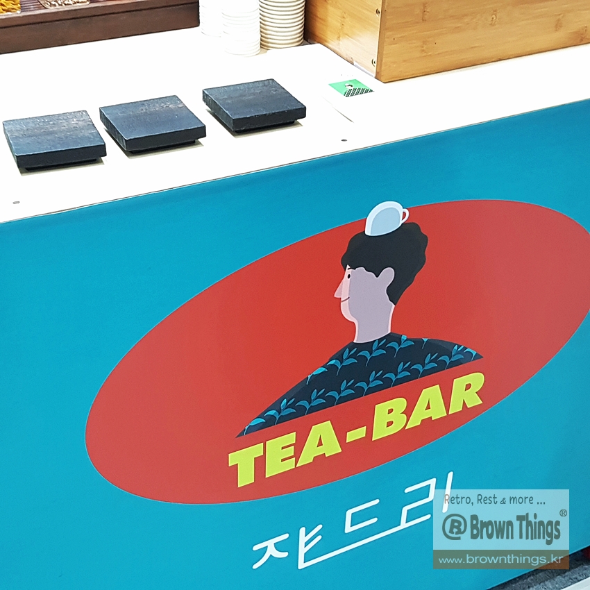 찻잎과 찻잔과 사람을 담고 있는 쟈드리 로고
