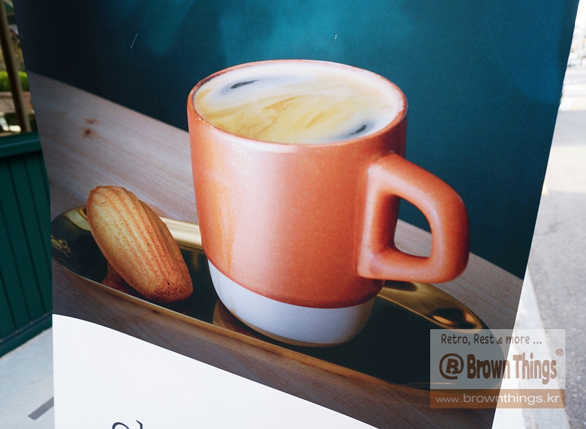 ▼ 킨토 슬로우 커피 스타일 스태킹 오렌지 머그를 사용하고 옥외 배너 간판에도 넣은 서울 합정동 카페 _ 로스팅 마스터즈