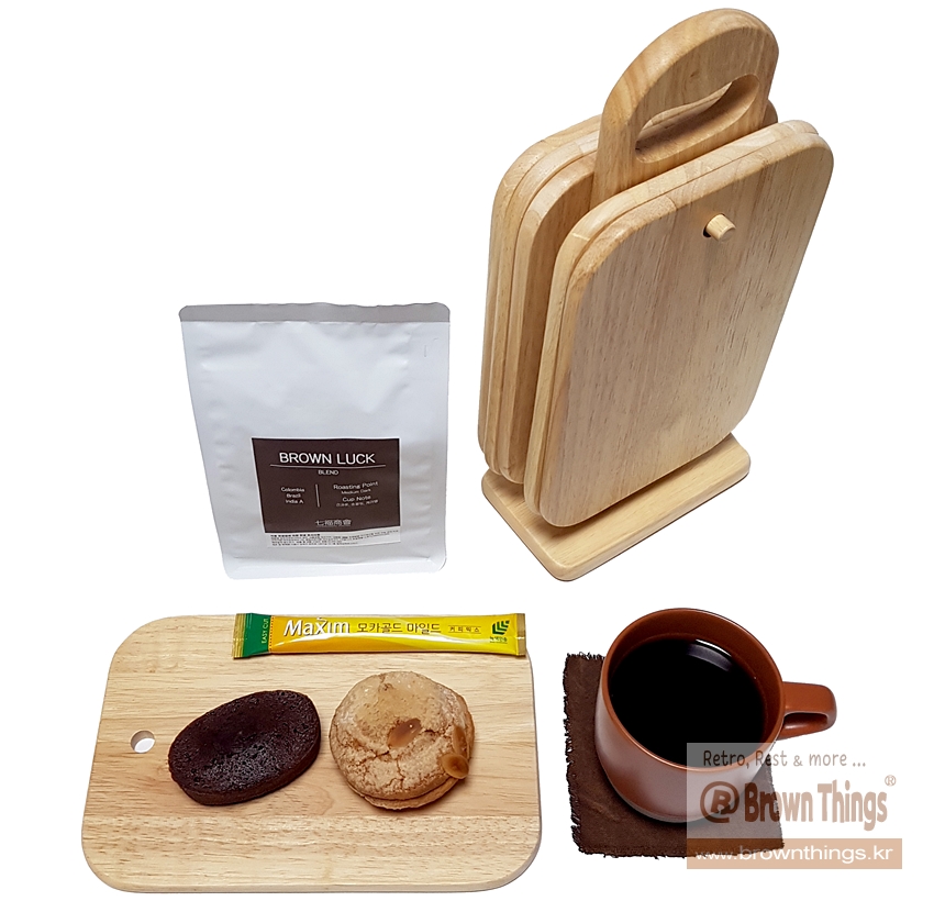 구닥다리 점빵 브라운 띵스에서 [나무 접시 6개 꾸러미와 거치대 세트] 구경하기: