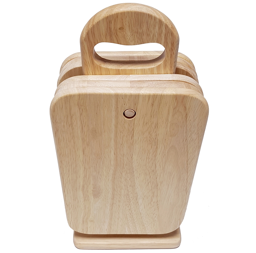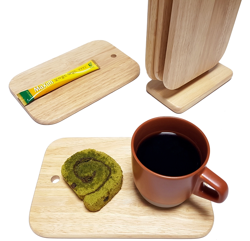 나무 접시 6개 사용하지 않을 때는 착착착 포개서 거치대에 꽂아서 보관할 수 있는 공간 효율성.