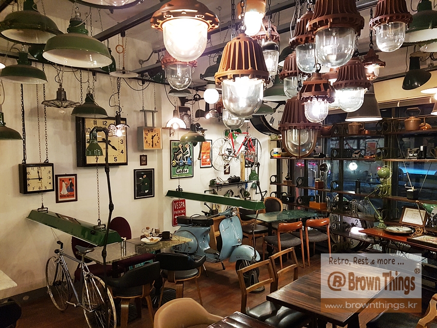 더블하모니는 주인장의 지대한 관심으로 수집하고 있는 영국의 빈티지 조명과 빈티지 벽시계를 전시하고 있는 카페.