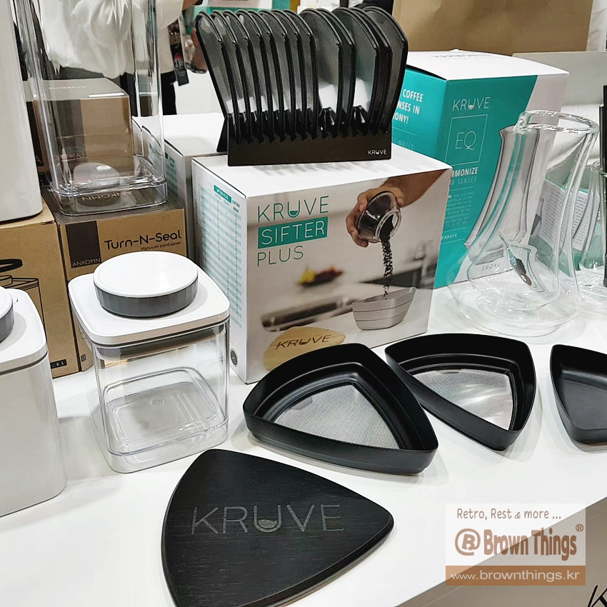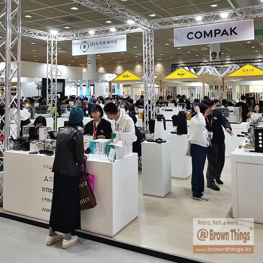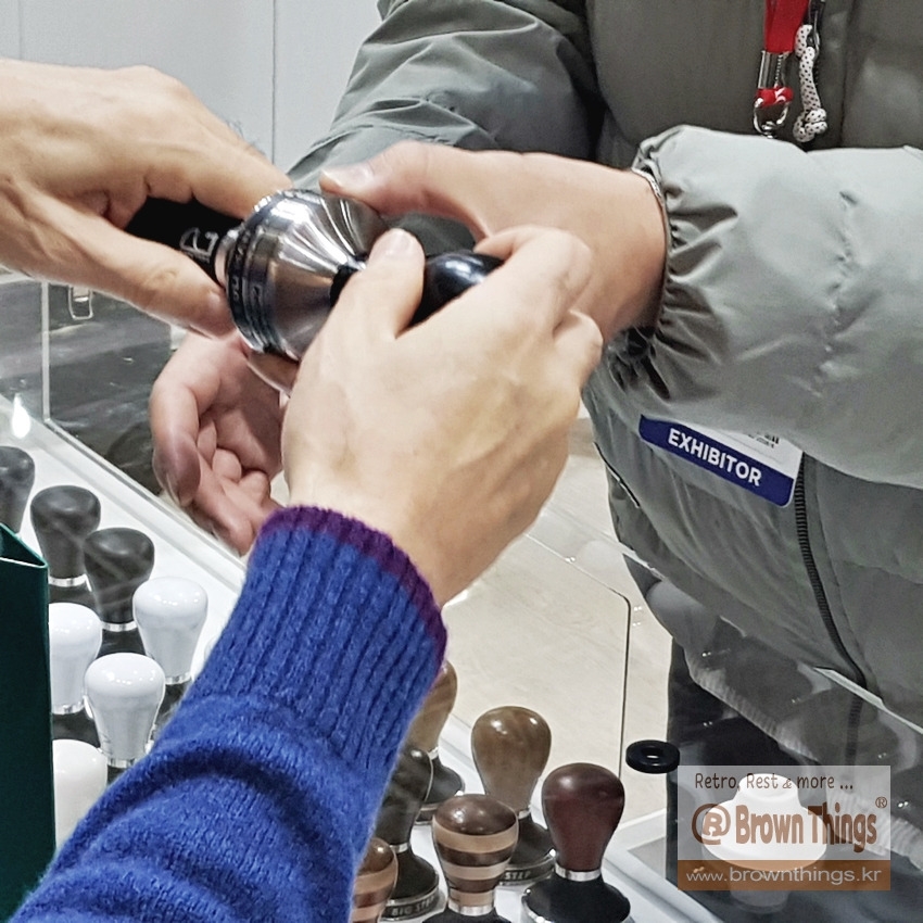 바리스타 용품 부스: 크루브 KRUVE 커피잔, 풀맨 탬퍼, BH TOOLS, 커피 드루잉 도구 델터 커피 (DELTER COFFEE)
