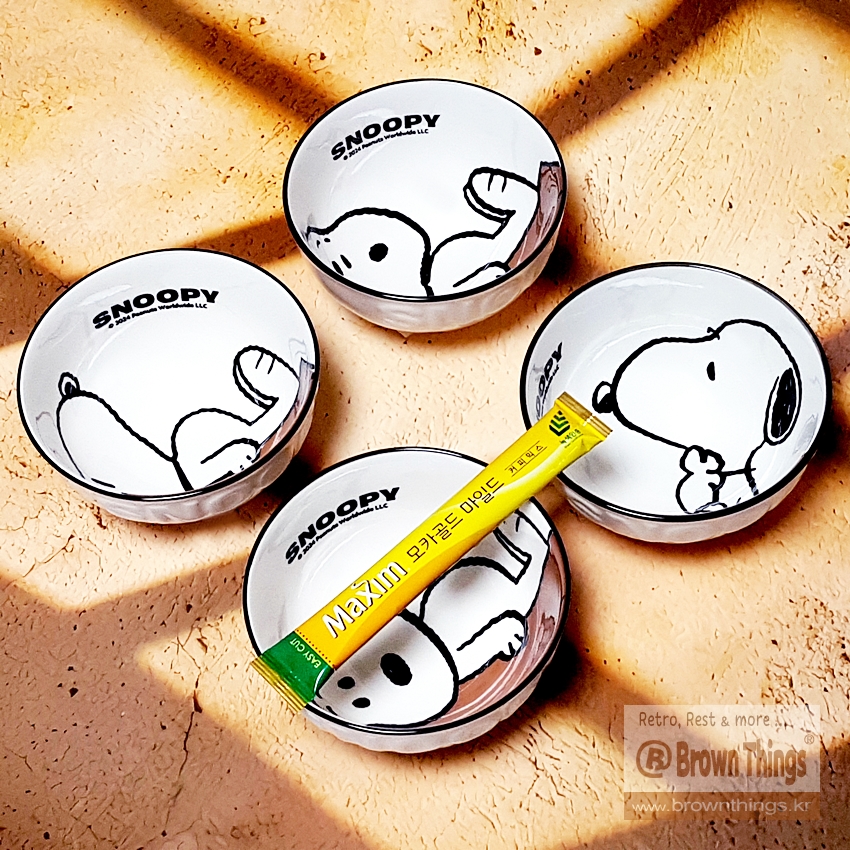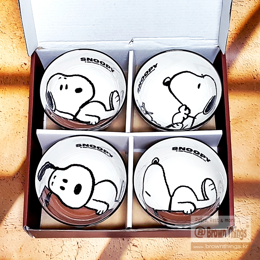 스누피 멍한, 뚱한, 졸린, 궁금 표정 4종 밥그릇 세트 | brownthings.kr/product/detail.html?product_no=375