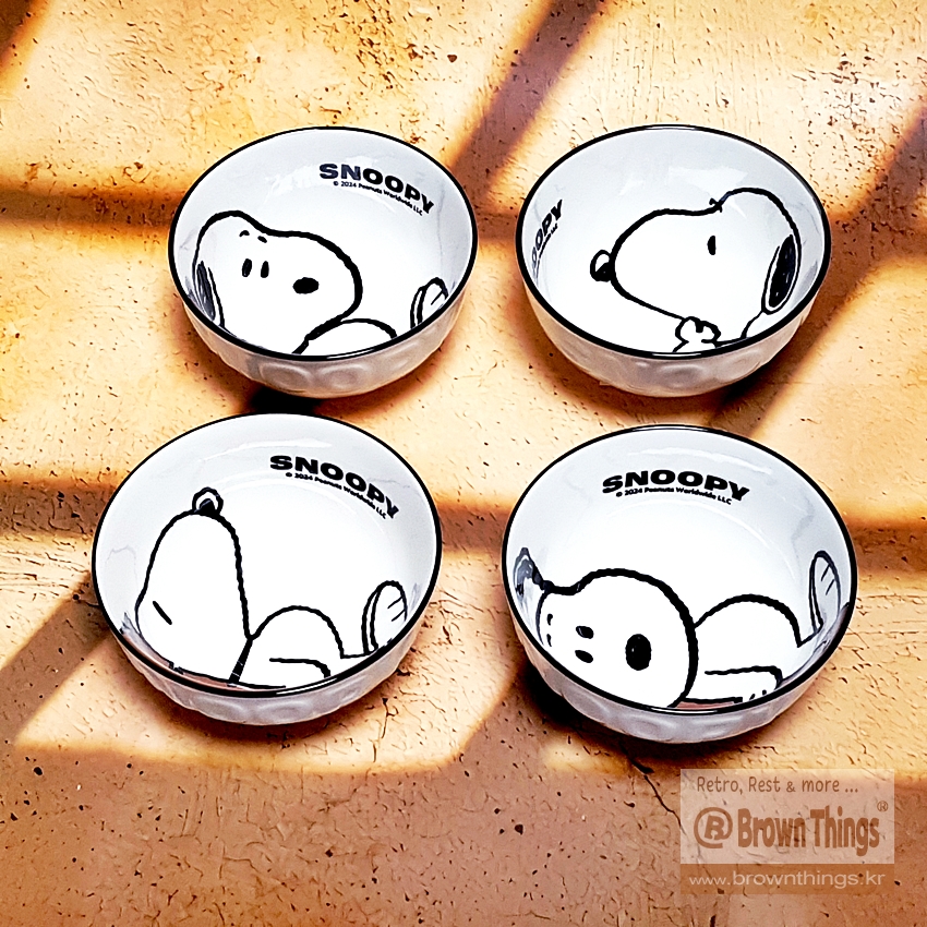 레트로 레스트 문화가게 브라운 띵스 - 스누피 SNOOPY 일러스트 멍한, 졸린, 뚱한, 궁금 표정 4종 도자기 밥그릇 세트