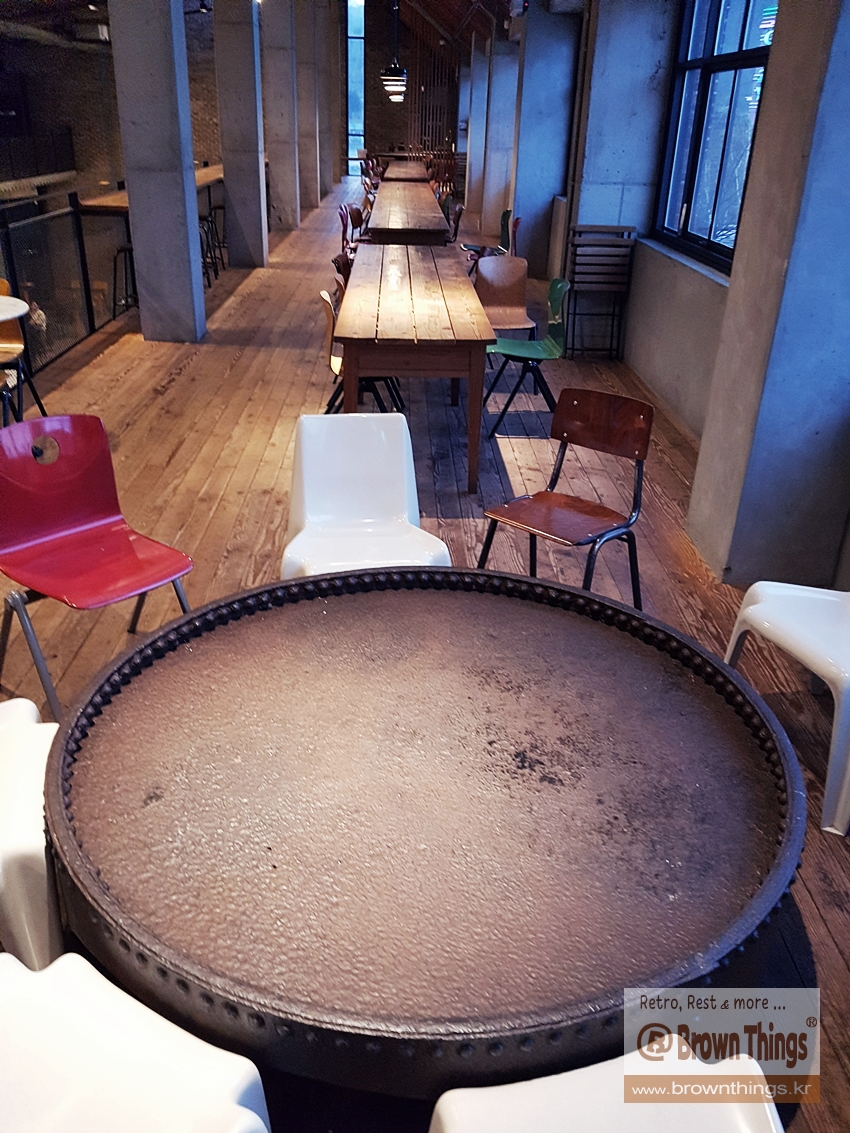 ▼ 테라로사 서종 1층의 빈티지 무쇠 탁자