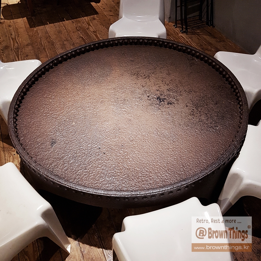 ▼ 테라로사 서종 2층의 빈티지 무쇠 탁자