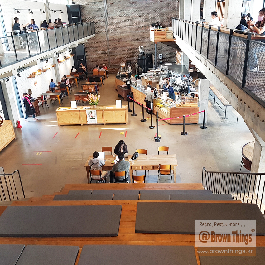 2층에서 내려다보는 테라로사 서종 1층.
