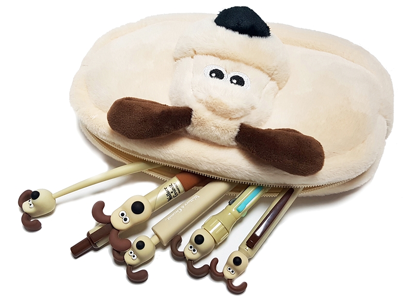 월레스와 그로밋 - 그로밋 사각 파우치 속에 담은, 여러 모양의 그로밋 피규어 볼펜과 샤프: