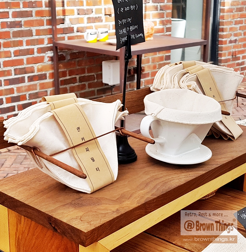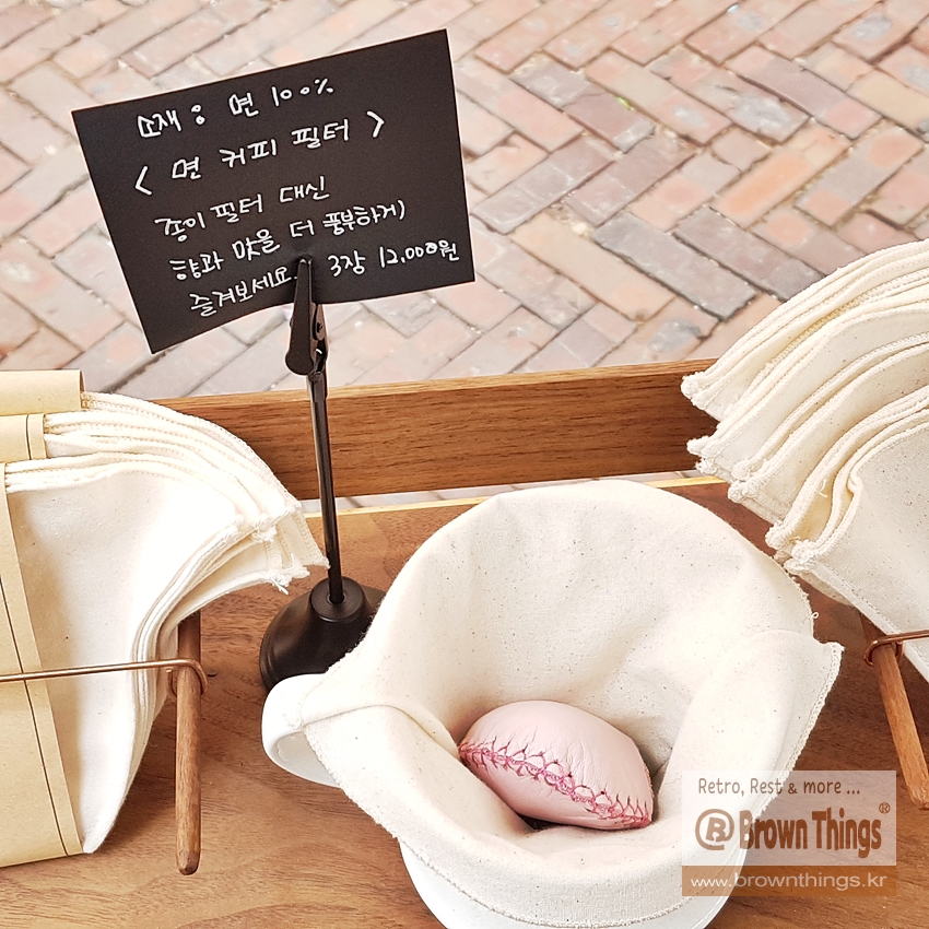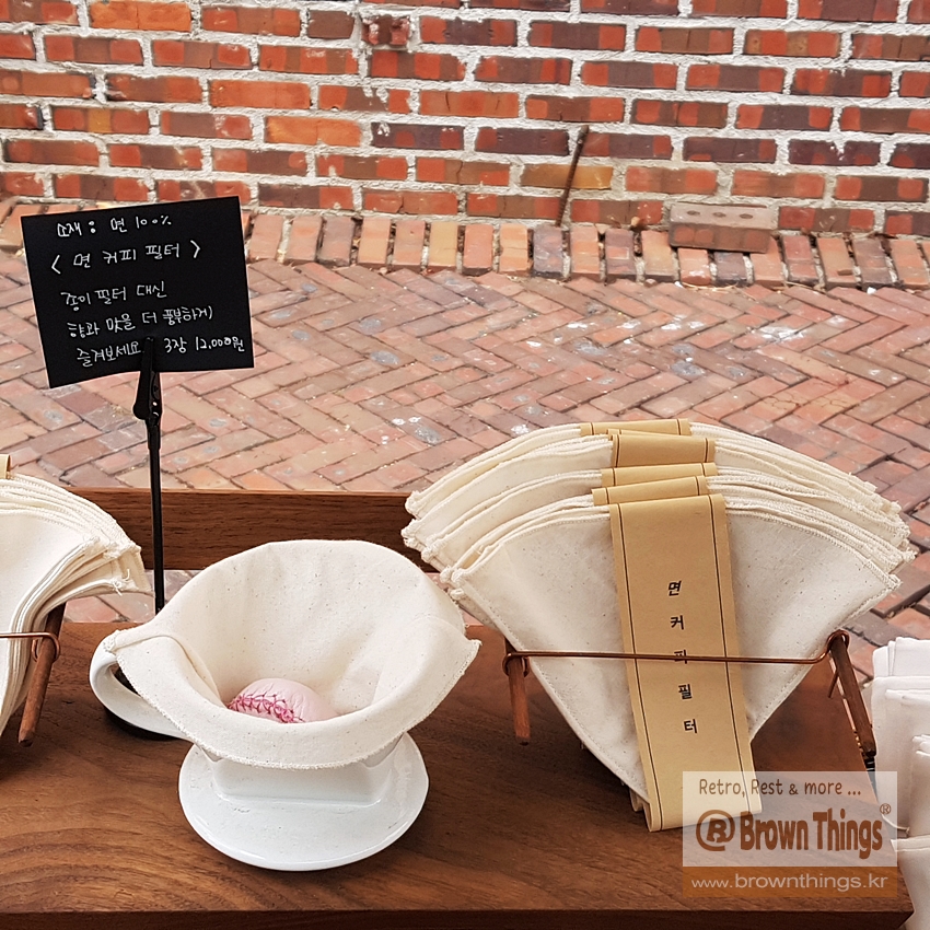 테라로사 서종점 옆 생활 소품 편집샵 매일상회의 제로웨이스트 브랜드 손거미 융드립용 면 커피 필터, 융필터