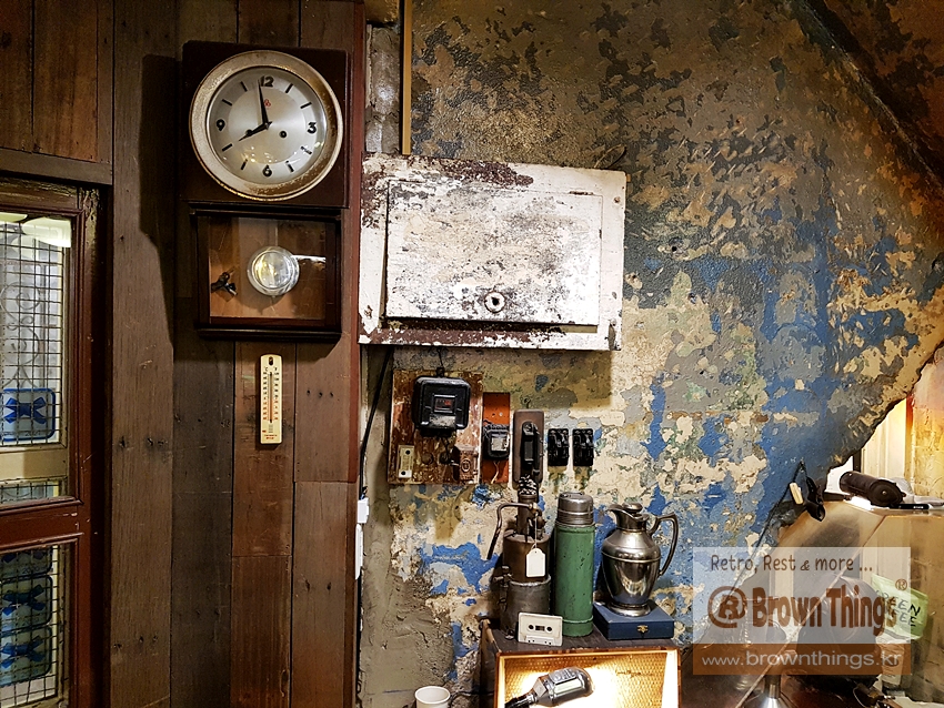 안에 들어서면 왼쪽 벽에서 똑딱 똑딱 추가 움직이는 괘종시계와 두꺼비집.