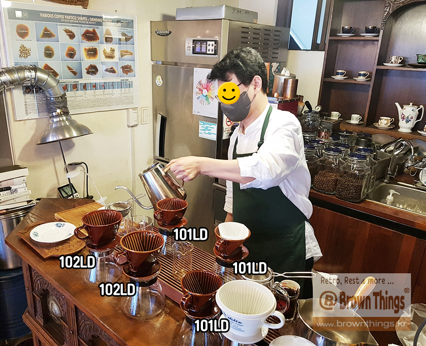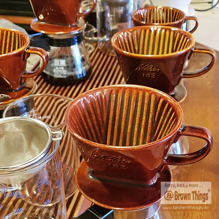 통돌이 로스터로 생두 볶고 칼리타 도자기 드리퍼 101LD, 102LD 갈색을 주력 사용해서