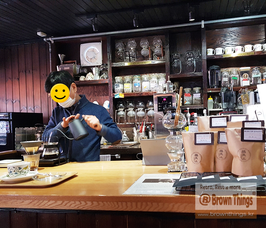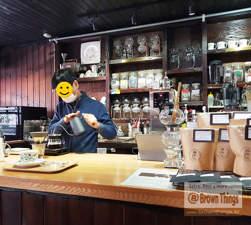 신촌 그 자리에서 1975년부터 사이폰 커피와 핸드드립 커피 내리고 있는 노포 (카페 말고) 커피숍.