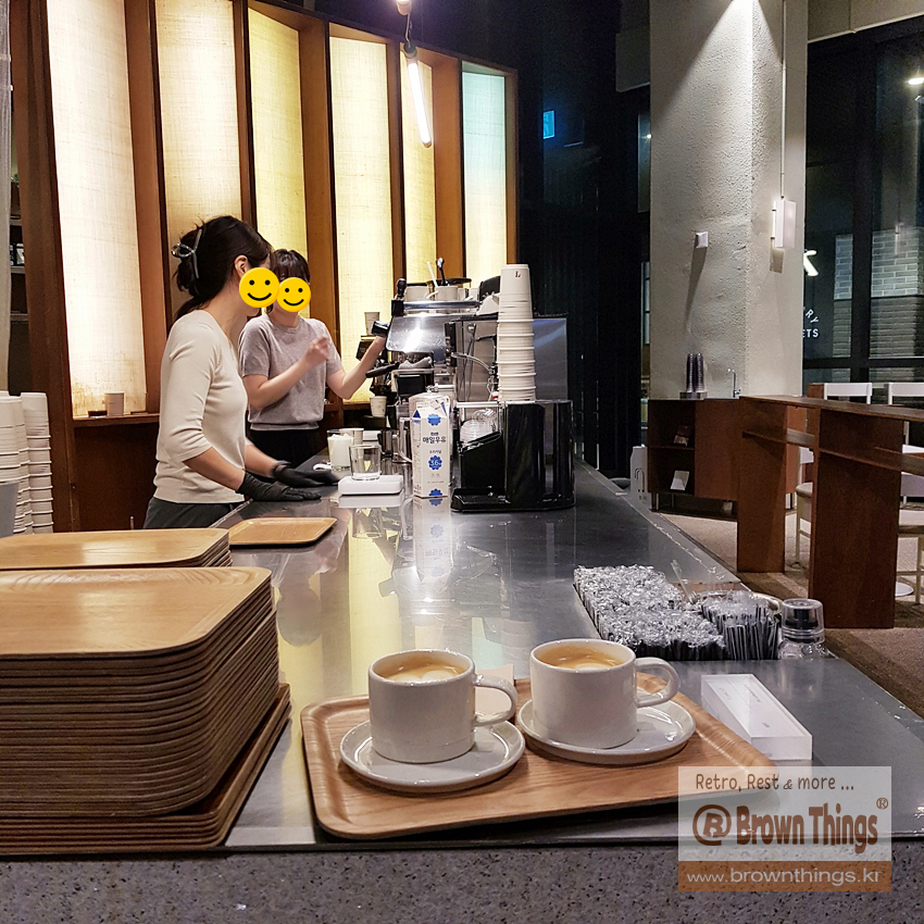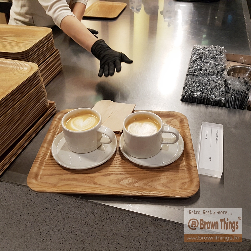 플랫화이트를 마셨던 이날은 쟁반의 정체를 확인하지 못했는데