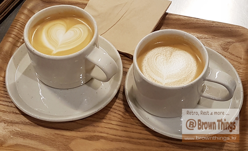 지난번 결에 와서 플랫화이트를 마셨을 때는 쟁반 밑면이 궁금했었지만,