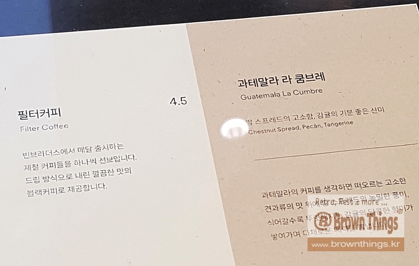 다음 방문에서는 과테말라 라 쿰브레 싱글오리진 드립커피 4,500원 주문.