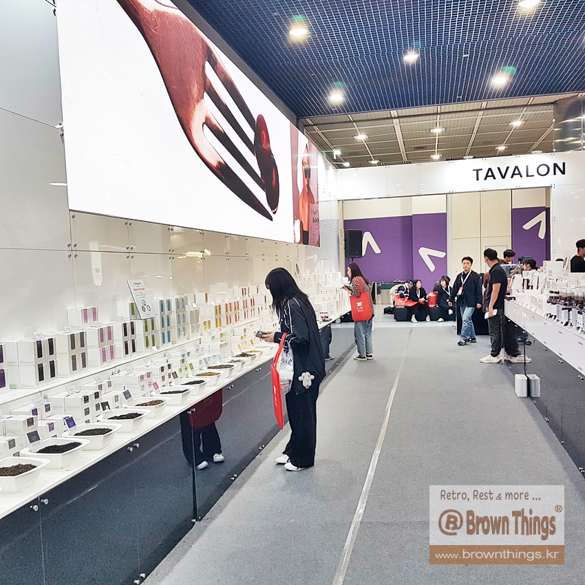 원재료 실물을 직접 만져서 촉감하고 향을 맡아 볼 수 있는 타바론 부스.