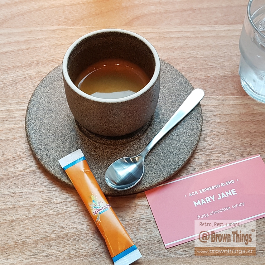 알레그리아 커피의 에스프레소 블렌드 메리 제인 원두로 에스프레소 주문.