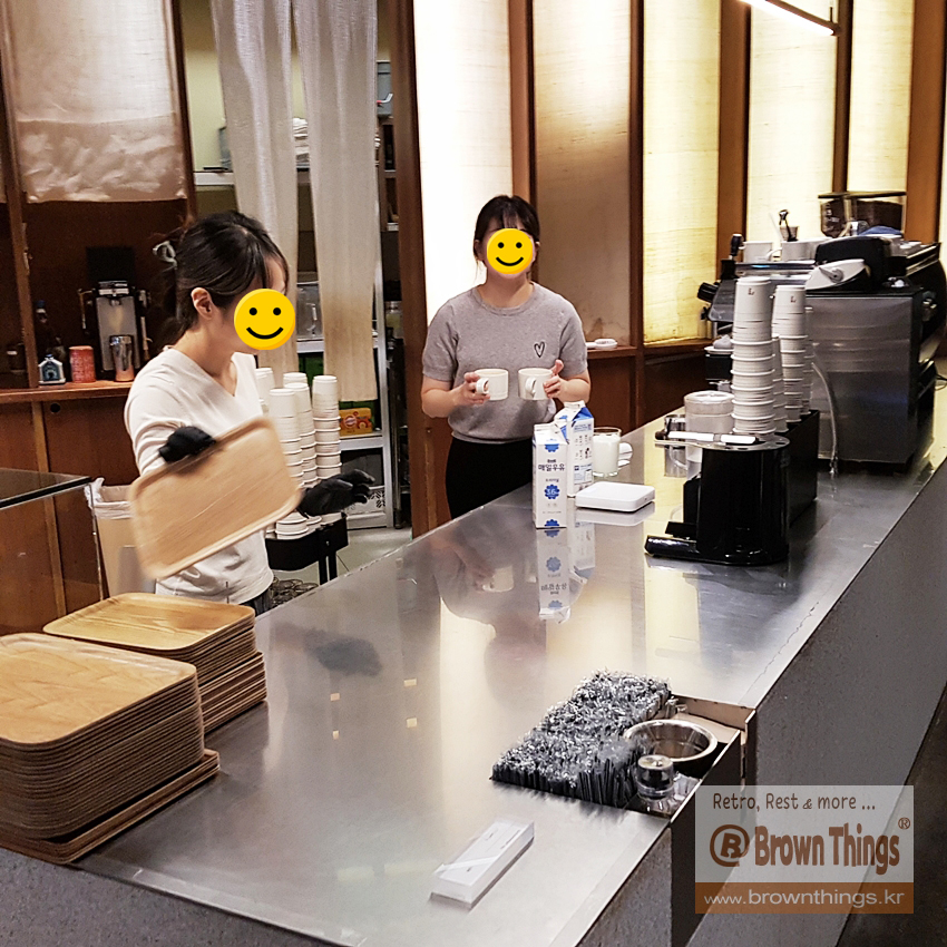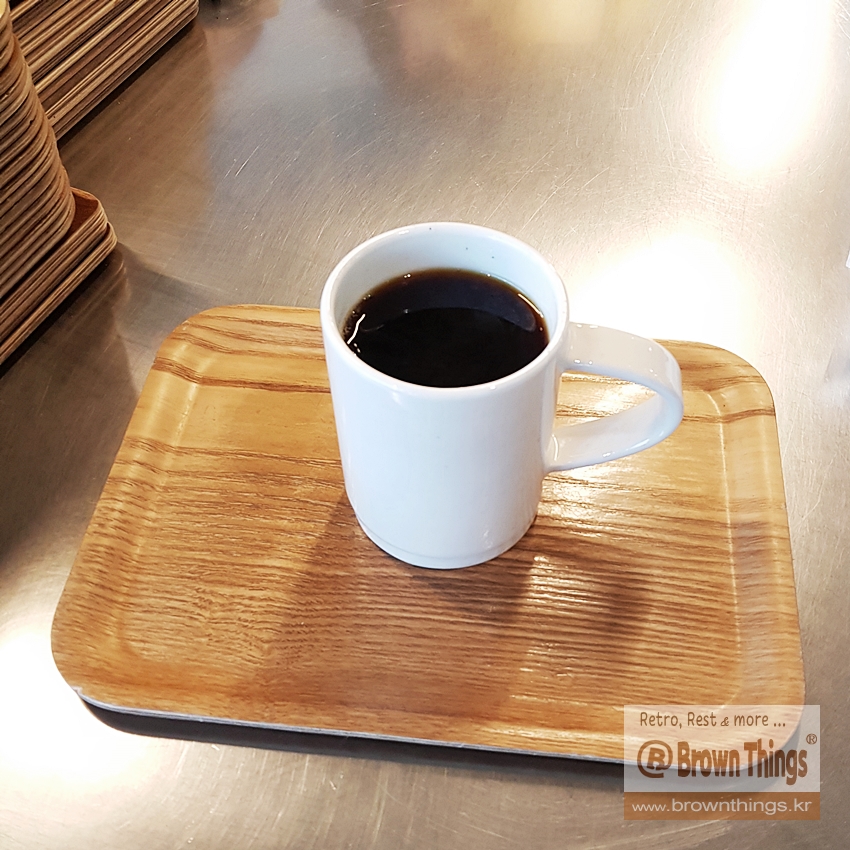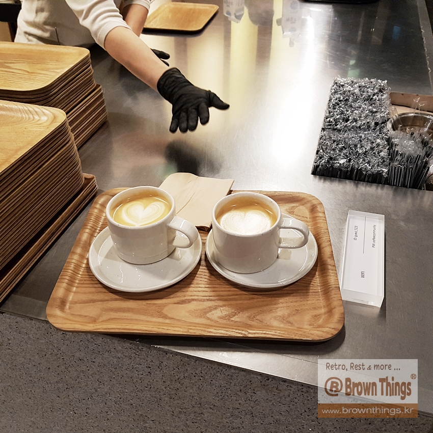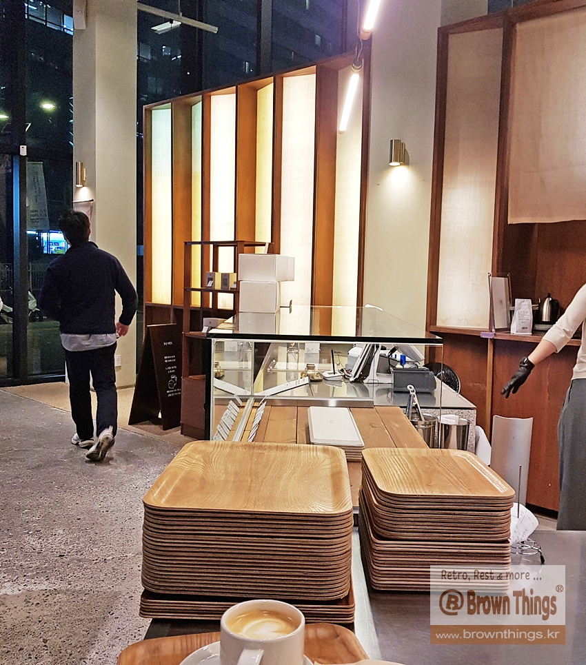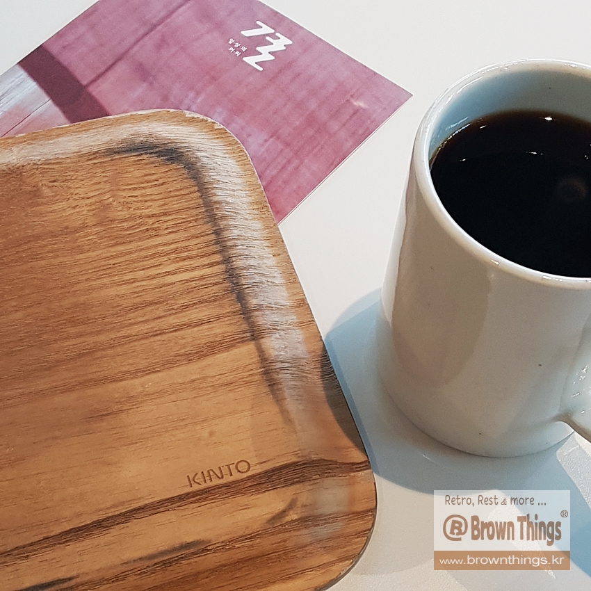 ↓ 종각역 센트로폴리스 빌딩 1층의 빈브라더스 카페 〈결〉에서도 사용하는 킨토 논슬립 원목 쟁반과 필터 커피 체험기
