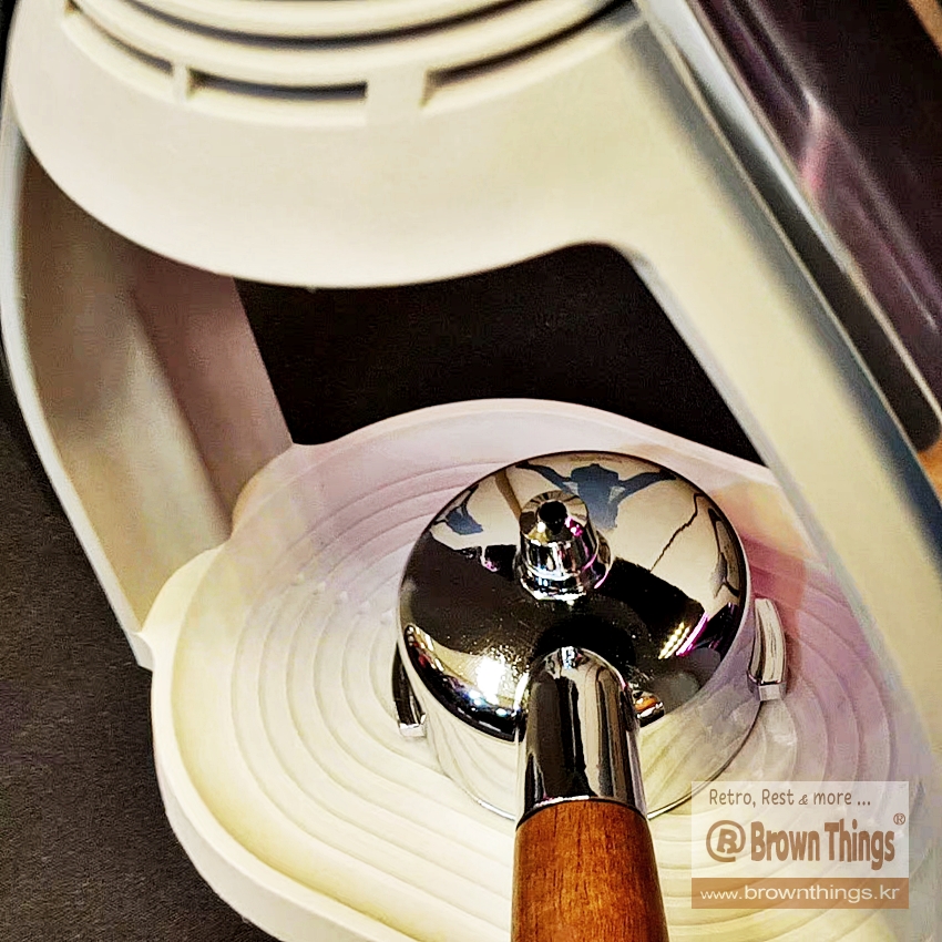 수동 에스프레소 머신 ROK PRESSO 작동 시연.