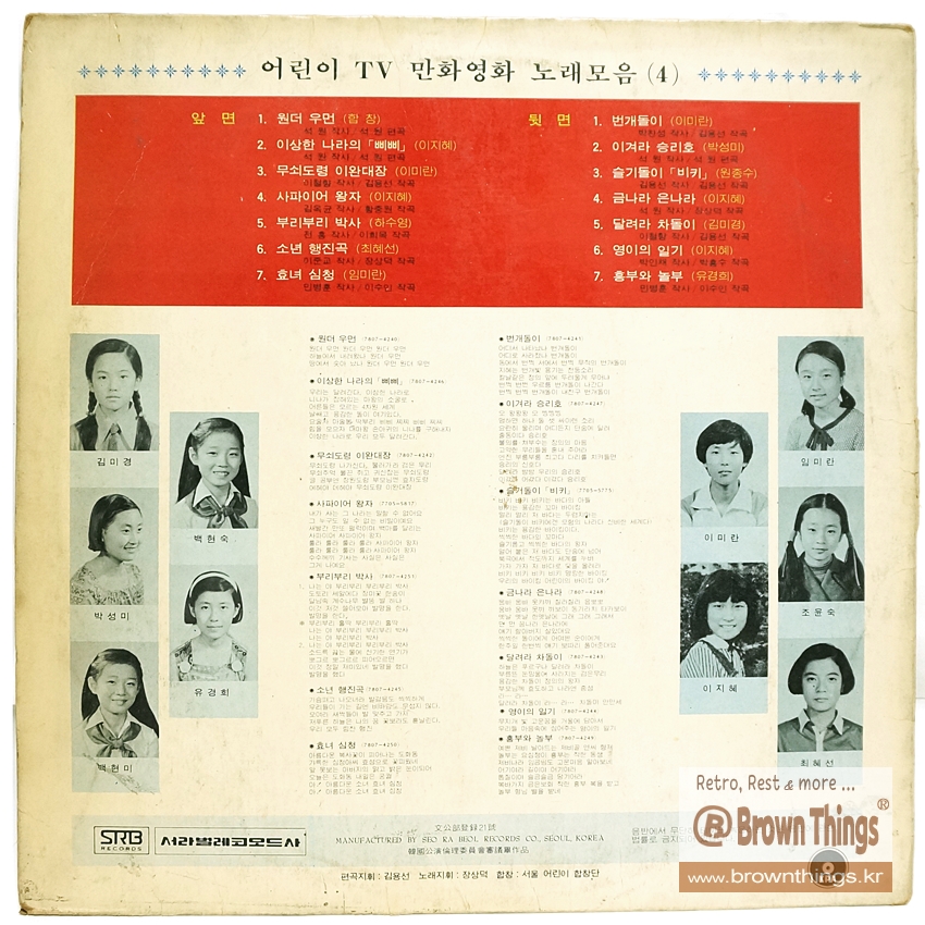 • 1970년대 테레비 만화영화 주제가 '어린이 왕국' 1집 LP / 프란다스의 개, 요술공주 세리, 마징가Z | book.brownthings.kr/195