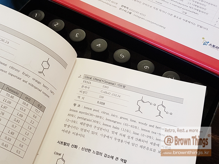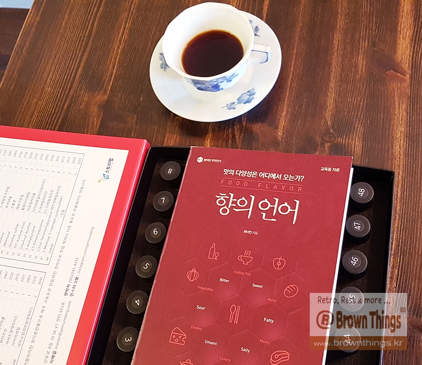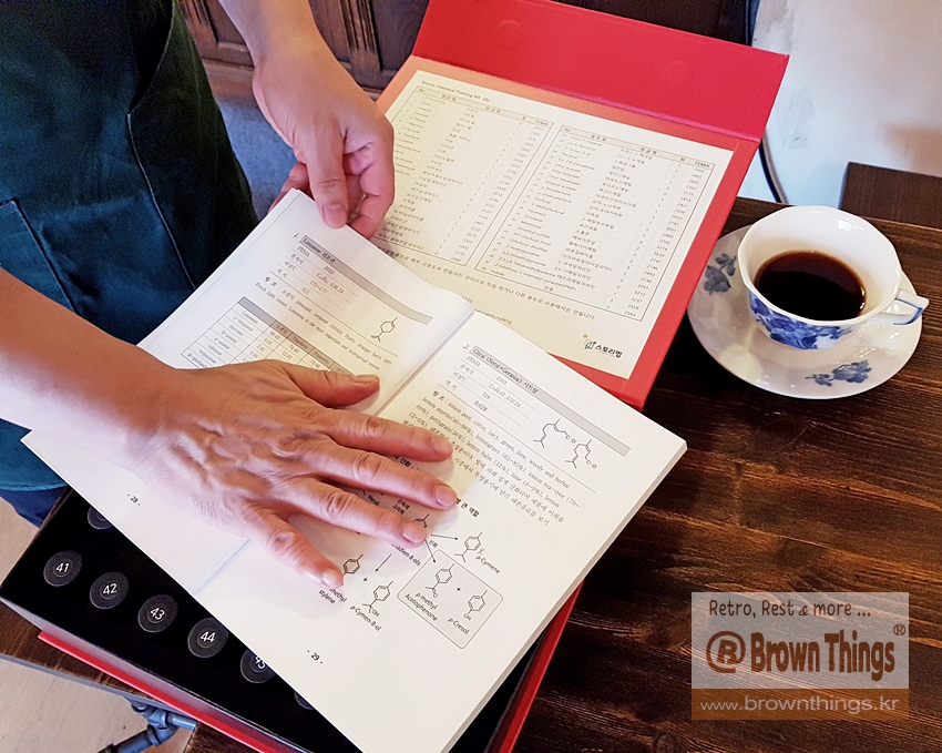책과 향기물질 용액 48종으로 구성한 세트 교재이며 조향사 교육과 바리스타 향미 교육에 많이 사용되고 있는 책.