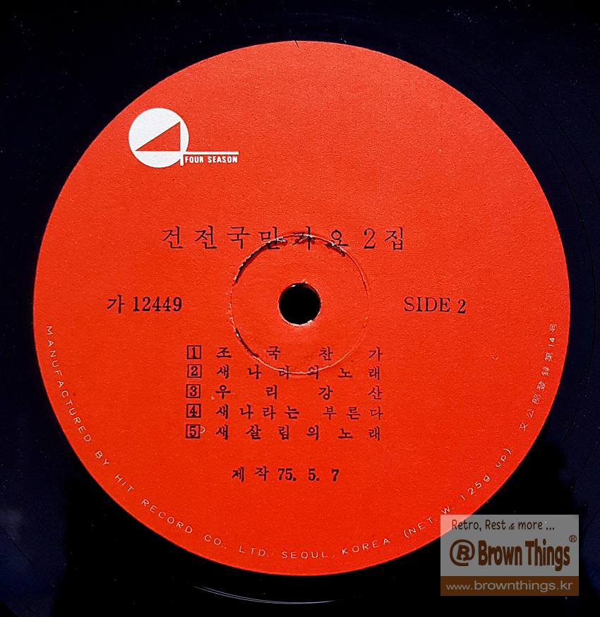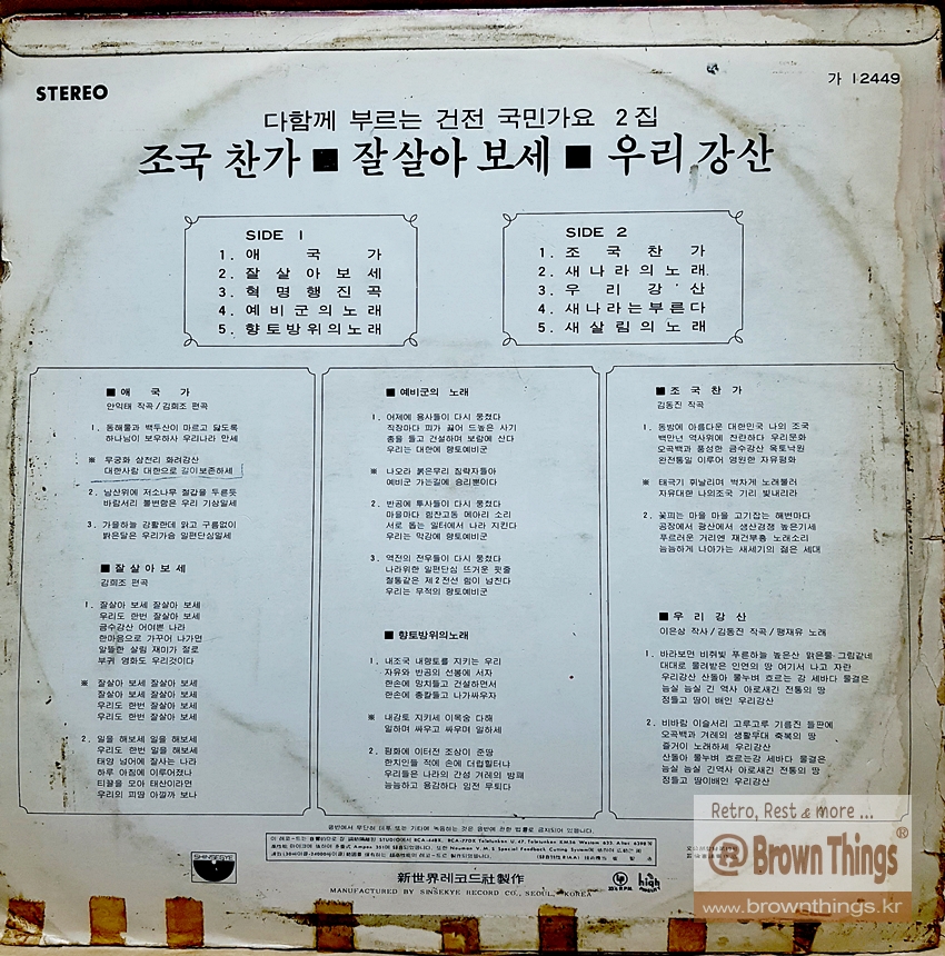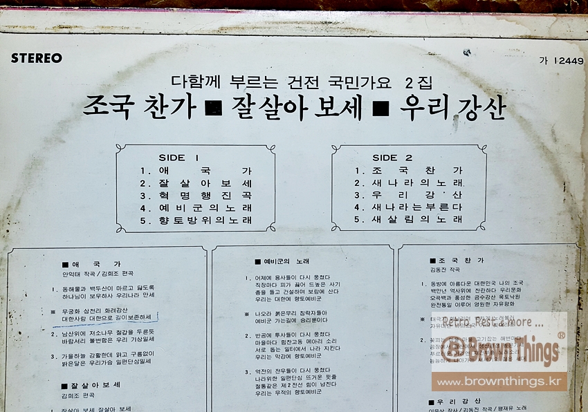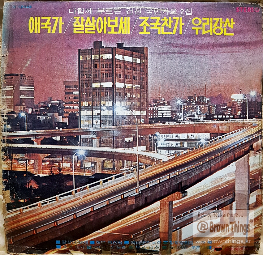 1970년대 애국 의식 고취 건전가요 LP 음반 - 다함께 부르는 건전 국민가요 2집 수록곡: 잘 살아보세, 우리강산, 조국찬가