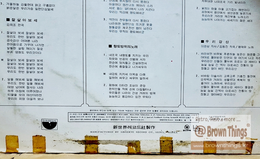 LP 비닐 음반을 찍어 내고 자켓을 인쇄한 지 50년이 지난 '건전가요' 모음 음반.
