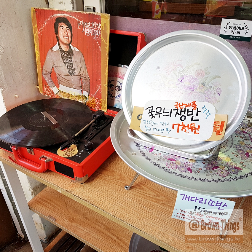 쌍화차, 대추차, 핸드드립 커피, 레트로 복원 문화 물건들을 판매하는 영심이네 커피상점.