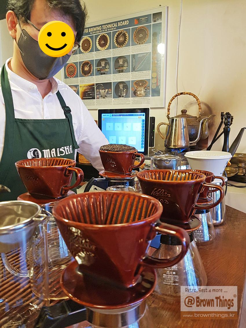 갈색 칼리타 세라믹(도자기) 드리퍼로 내리는 핸드드립 커피 by 망원동 카페 마이샤 | book.brownthings.kr/159
