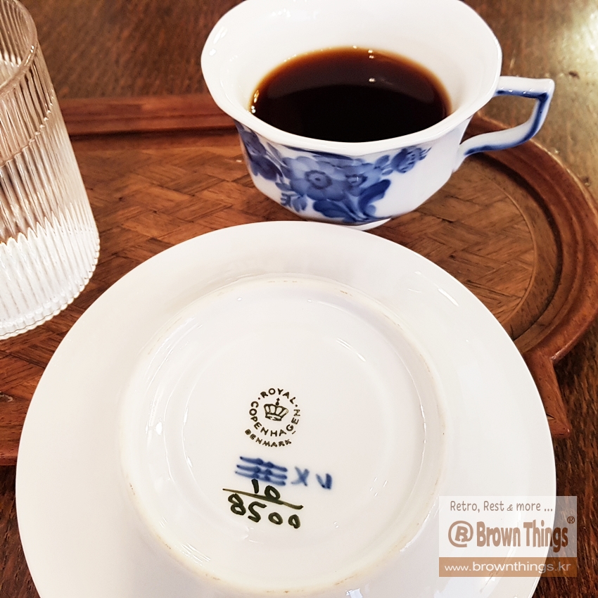 예멘 모카 마타리 커피를 담은 잔은 빈티지 로얄 코펜하겐 작품.