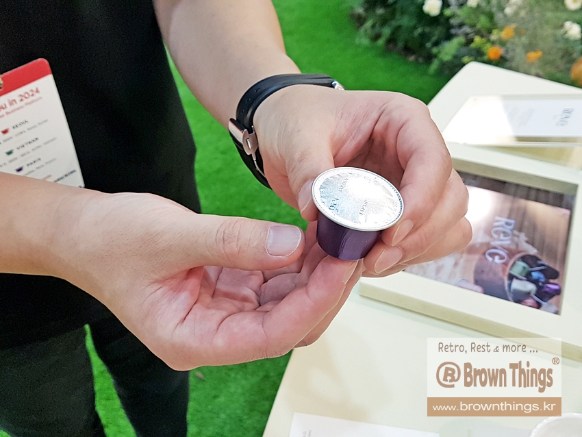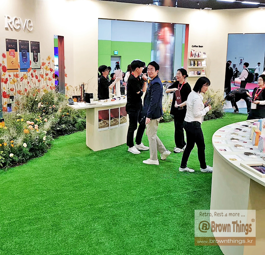 2023 서울카페쇼 부스 면적 상위 기업에 속하는 쟈뎅의 캡슐커피 브랜드 레브 REVE 코너.