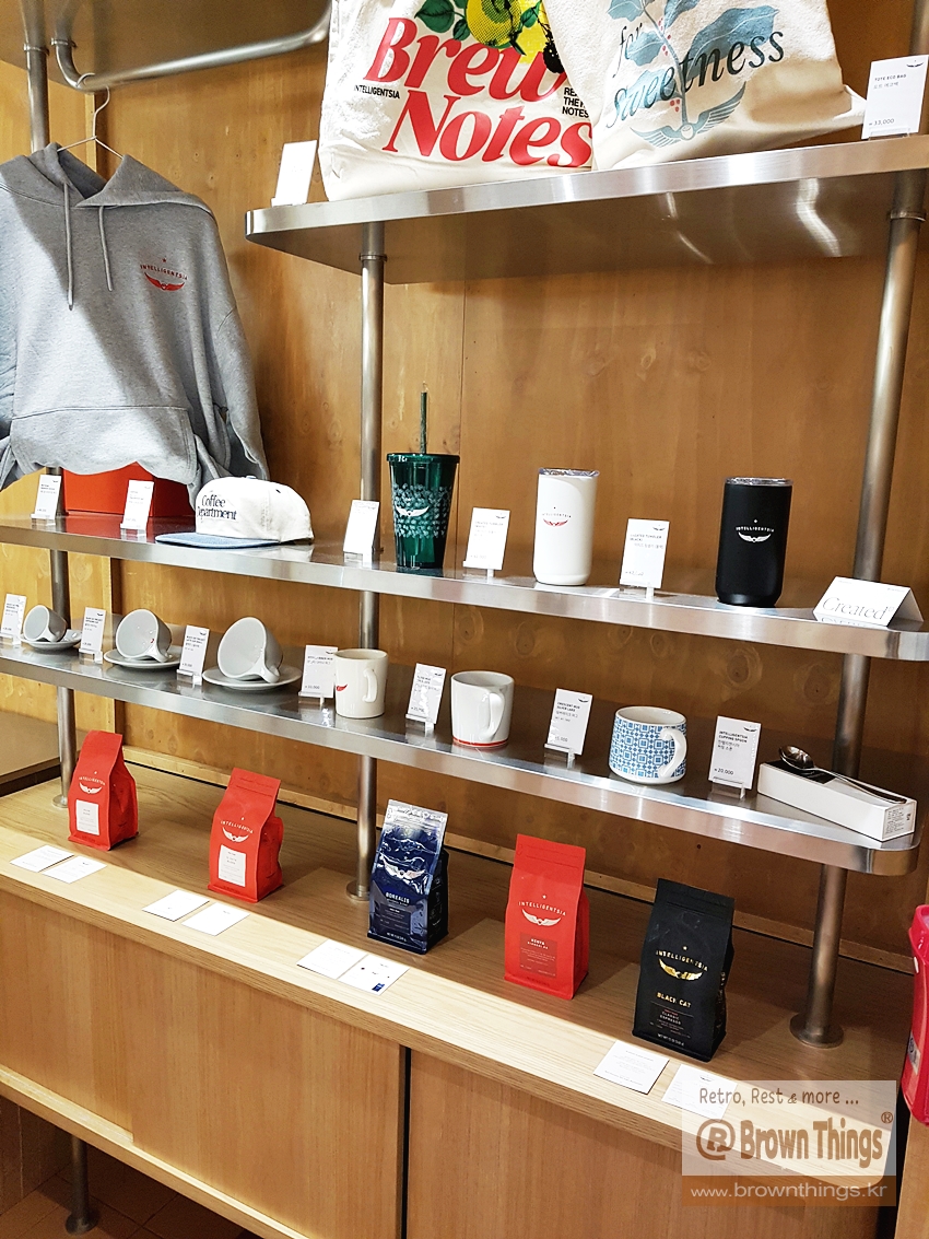 인텔리젠시아 커피 MD 상품: 모자, 굿즈, 에코백, 커피잔, 에스프레소 잔, 원두(블랙캣, 보레알레스)