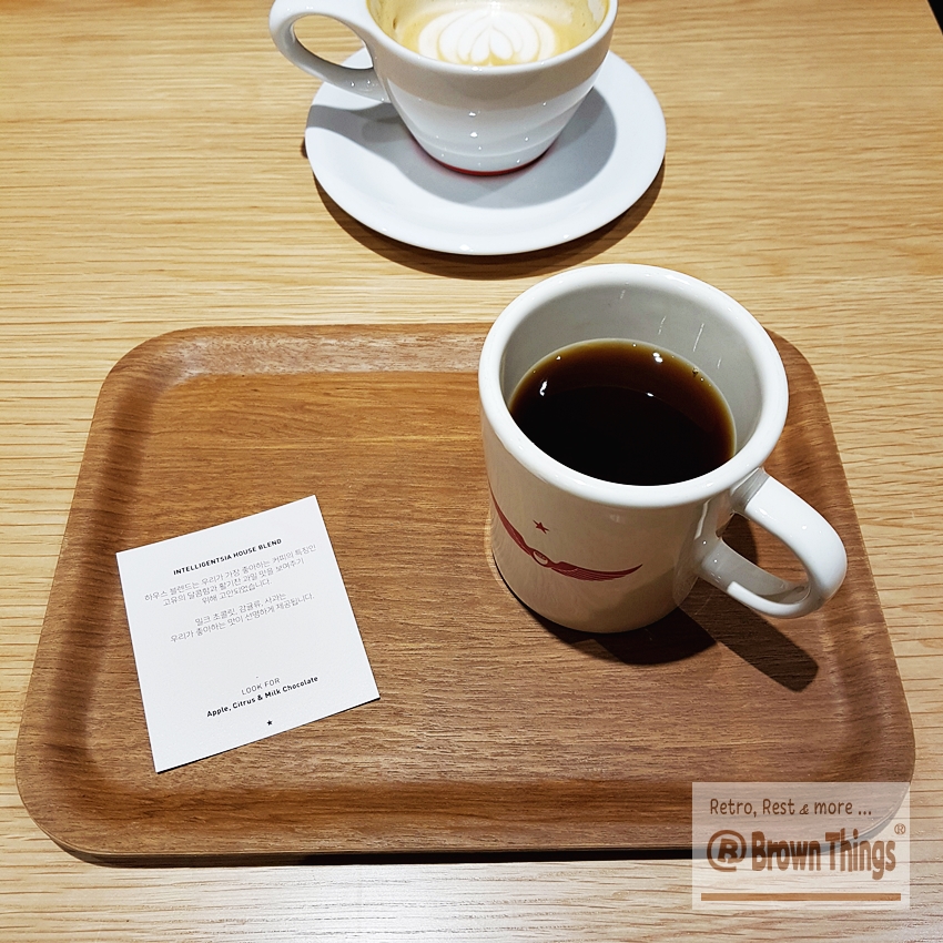 인텔리젠시아 바리스타 초이스 브루잉 커피 - 하우스 블렌드, 카페 라떼 주문.