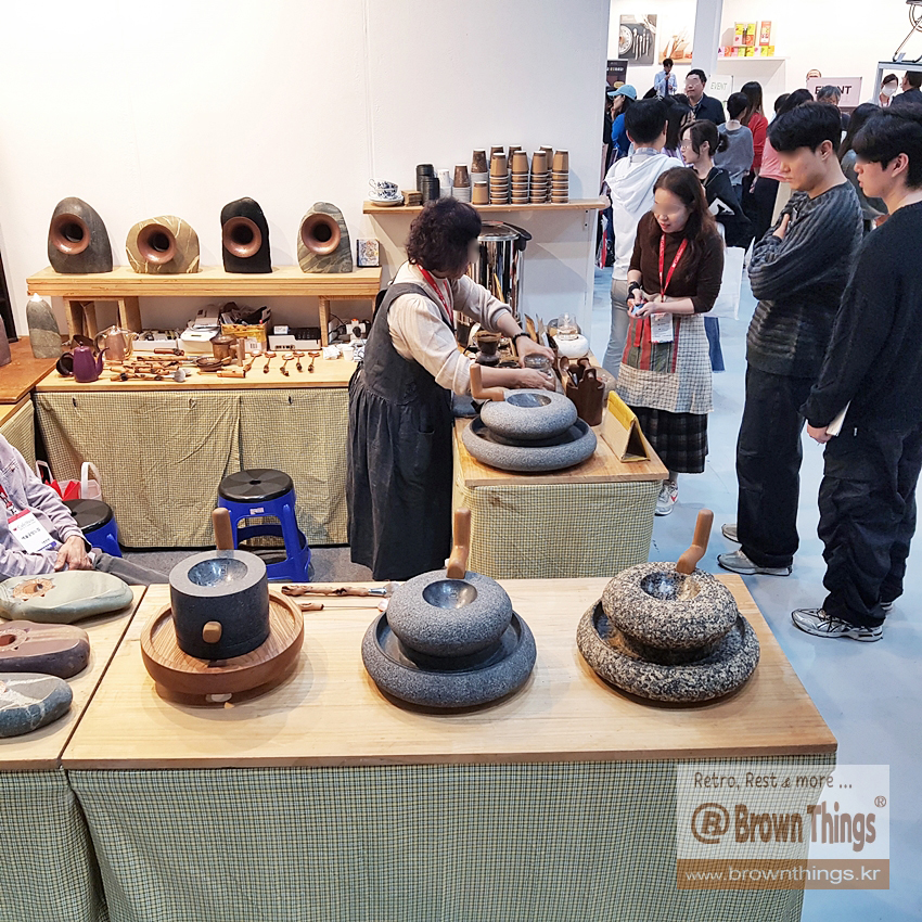 맷돌 커피 그라인더, 스피커, 촛대, 차통, 돌차판, 차시, 차 거름망 등