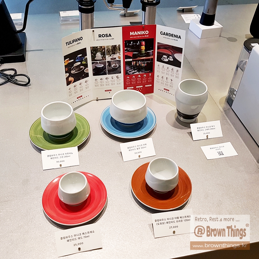 커피 용품 전시 판매 공간.