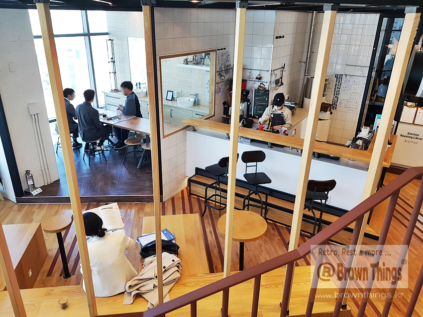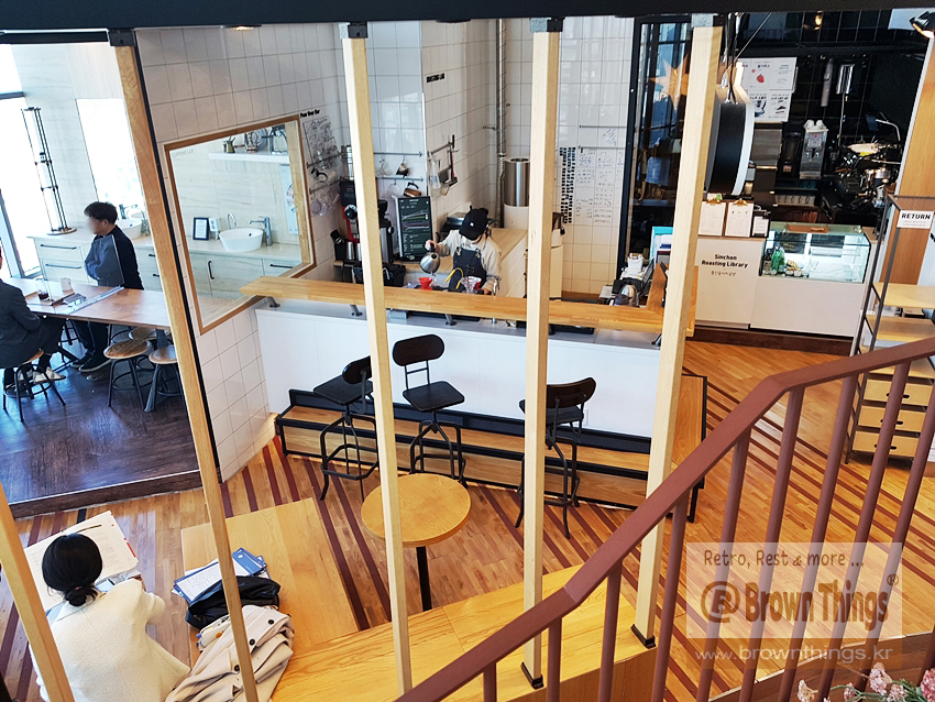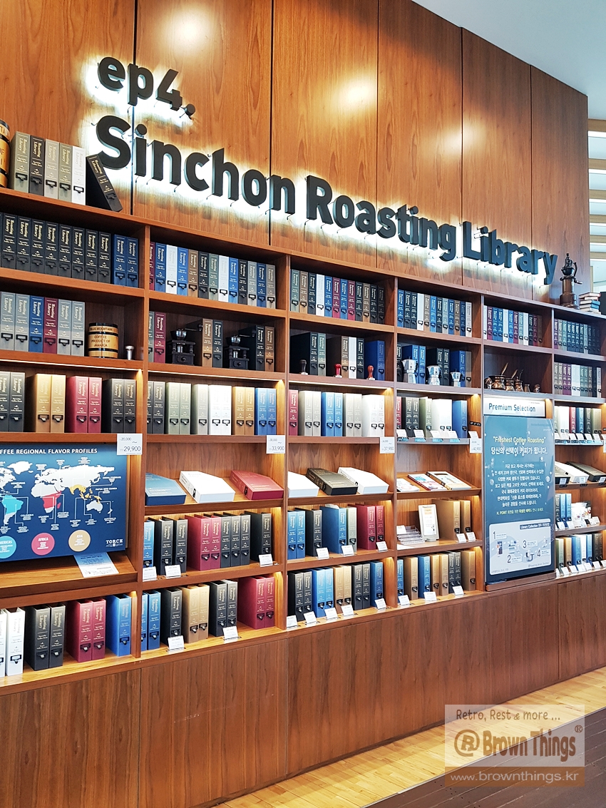 서촌 통인동 커피공방이 현대백화점 신촌점 유플렉스 12층에서 운영하는 커피 도서관 콘셉트의 카페.