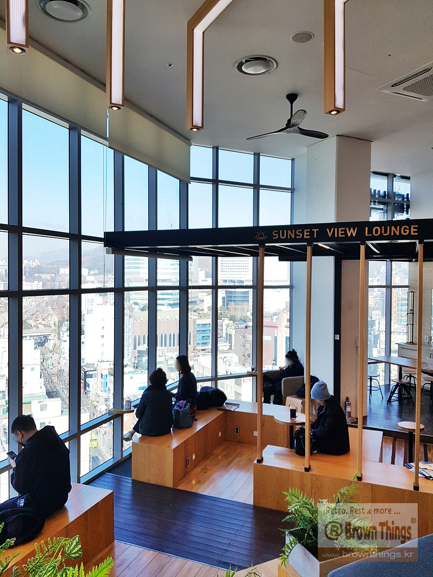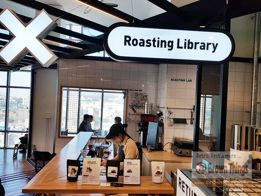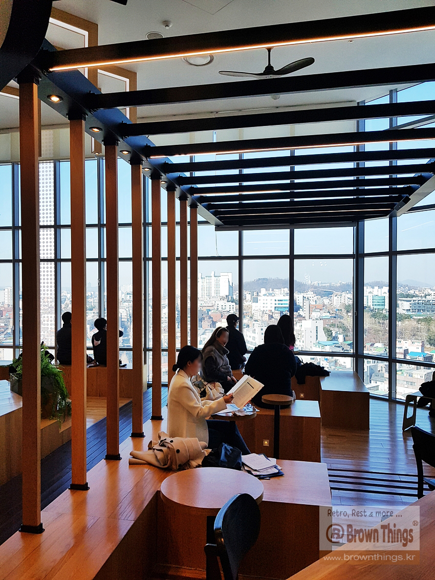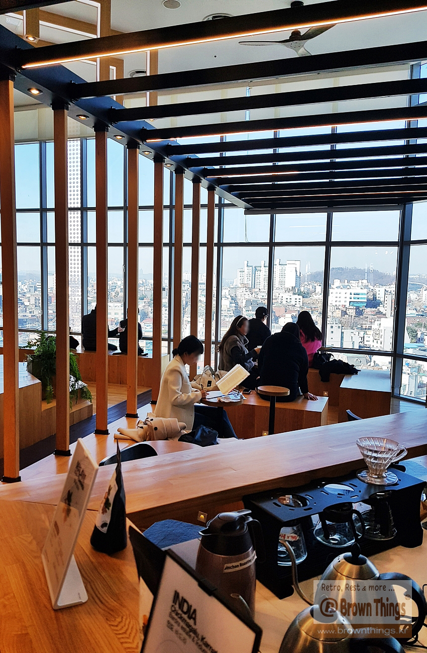 카페 탐방 - 12층 도심 전망과 은둔감을 만끽할 수 있는 숨은 아지트 신촌 카페 통인동 커피공방 로스팅 라이브러리